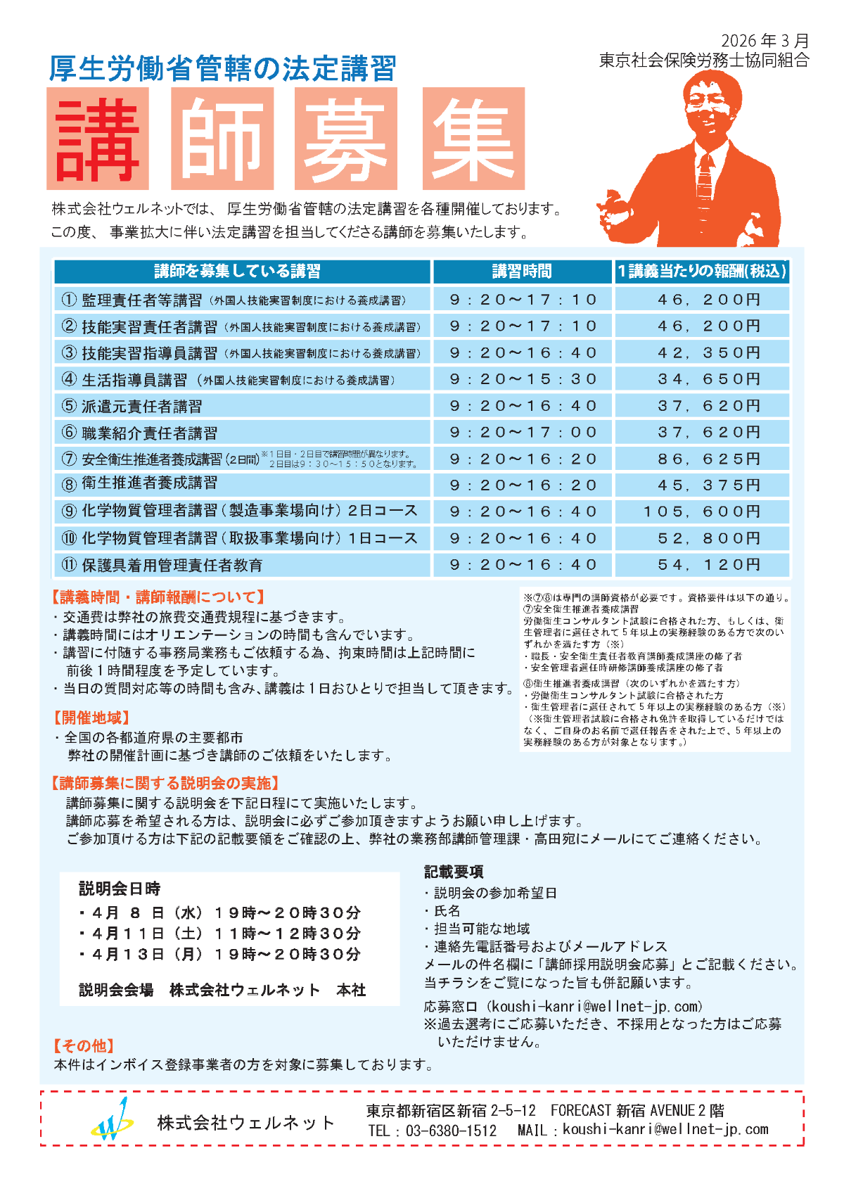 厚生労働省管轄の法定講習 講師募集のご案内