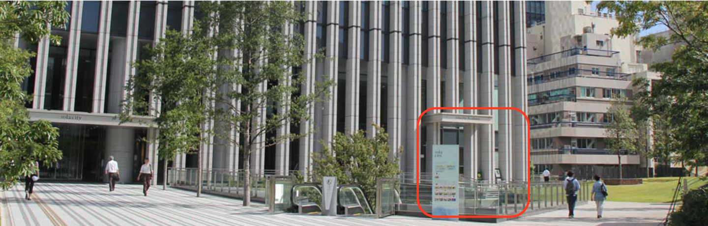 1階正面右手『sola city Academia』入口から入館し、つきあたり右のエレベーターで4階までお上がりください。