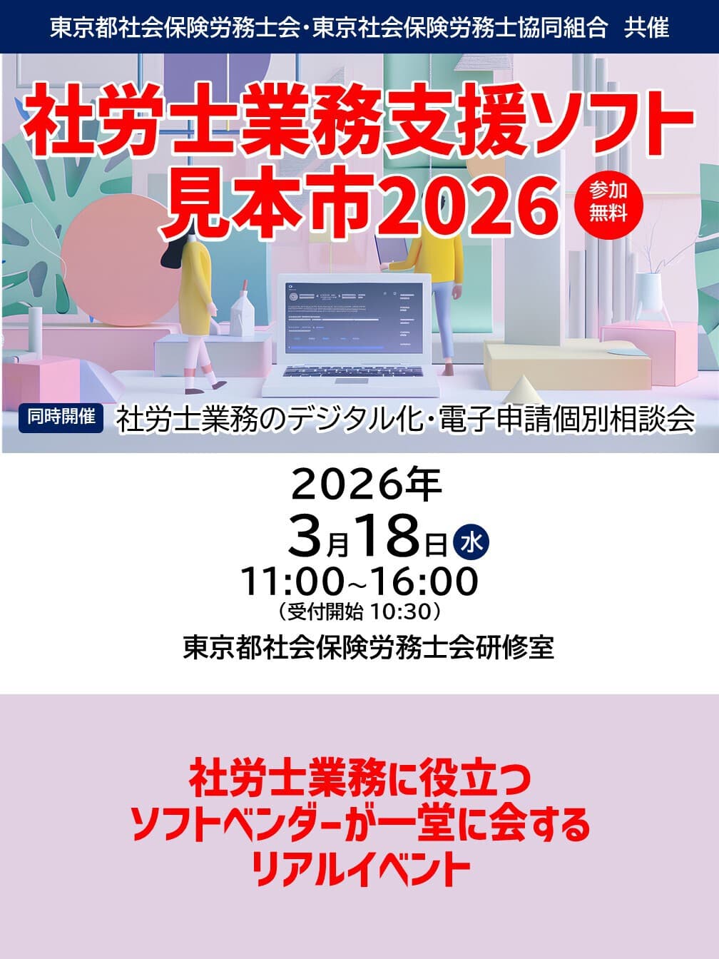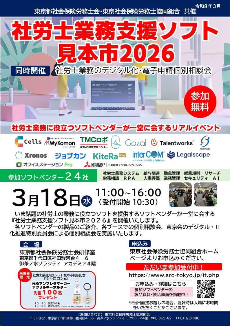 - 2026.3.18 社労士業務支援ソフト見本市2026を開催いたします。